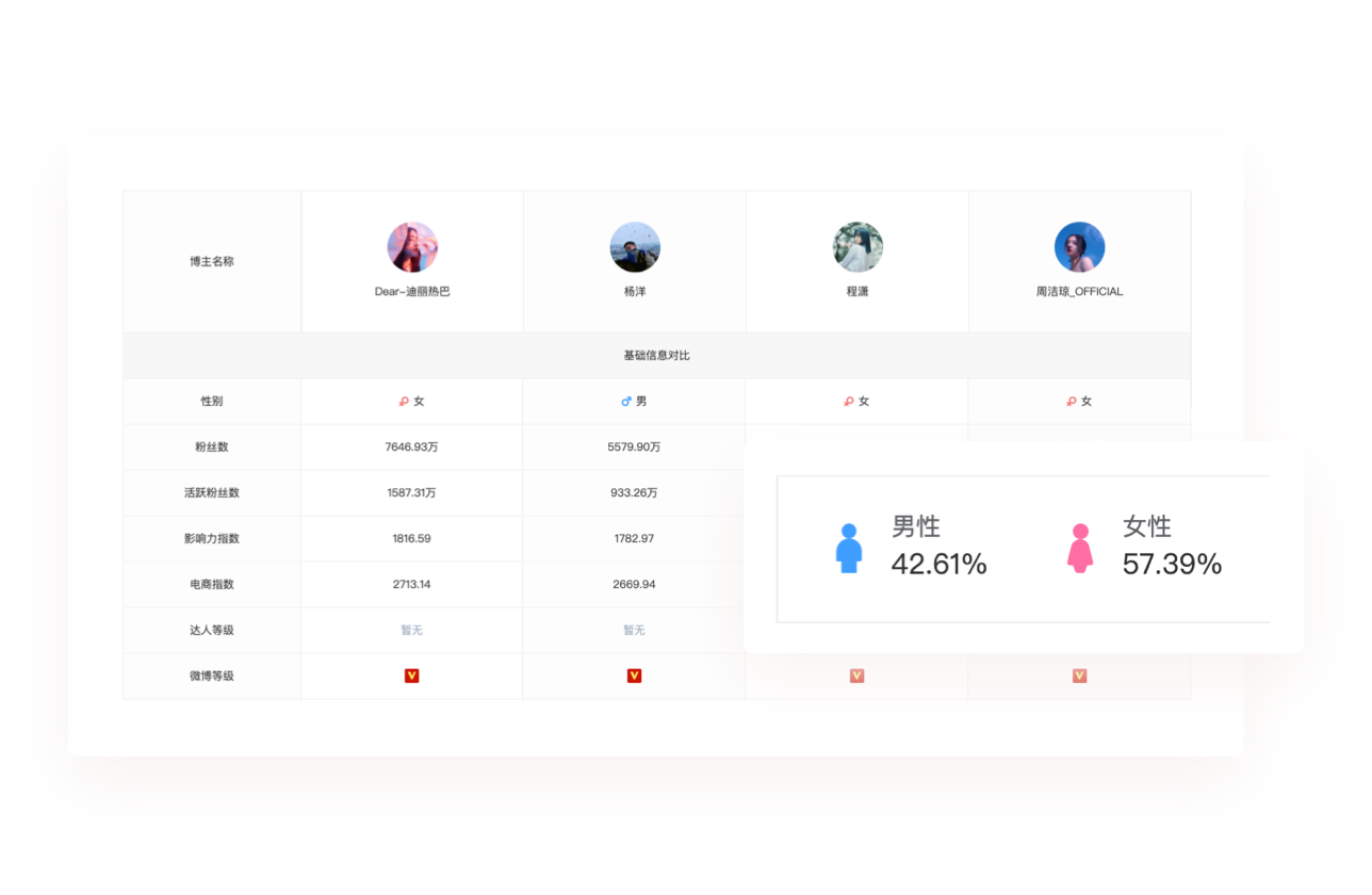 多項(xiàng)內(nèi)容全面解讀達(dá)人,歷史內(nèi)容追蹤,AI去水粉絲預(yù)估,智能算法評估達(dá)人價(jià)值,有效挖掘優(yōu)質(zhì)達(dá)人