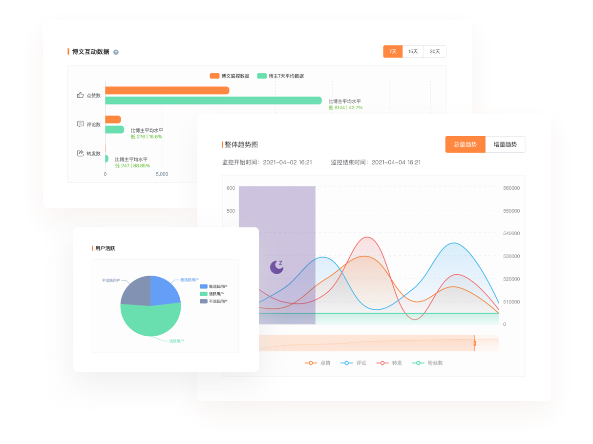 實(shí)時(shí)追蹤傳播動(dòng)態(tài),掌握互動(dòng)變化趨勢,有效判斷數(shù)據(jù)真?zhèn)巍⒎治鍪鼙姰嬒?/p>